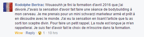 Et du coup grâce à toi, j'ai pu créer une page de vente, et puis bientôt le tunnel complet. Je n'ai pas encore les résultats, mais je ne doute pas de leur efficacité."
